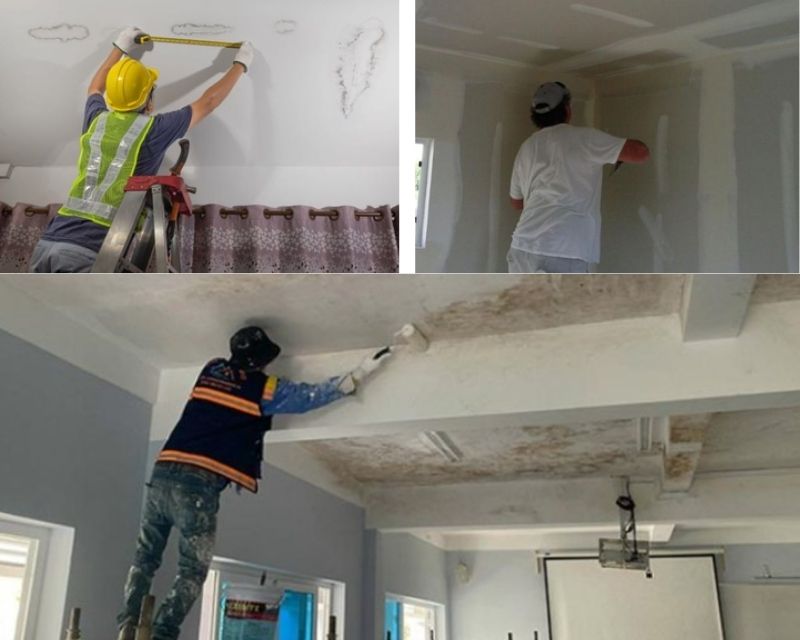 Thợ HNDC xử lý thấm dột và nứt tường cho nhà dân tại Sơn Trà, Đà Nẵng sau mùa mưa bão.