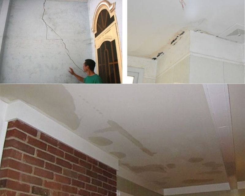 Tường nhà bị thấm dột và nứt để bảo vệ công trình khỏi xuống cấp.