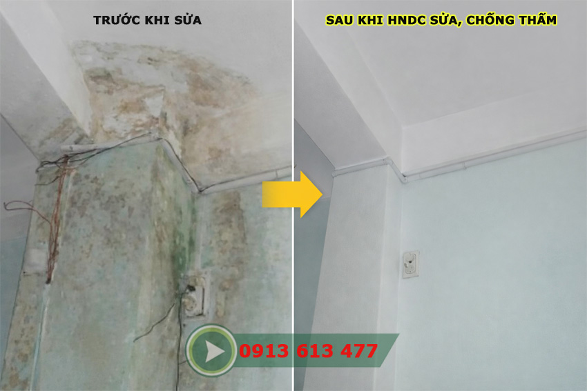 Trước và sau khi HNDC chống thấm tường tại Hải Châu