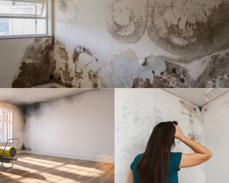 8. Tường ẩm mốc – dấu hiệu cảnh báo thấm từ nền hoặc mái