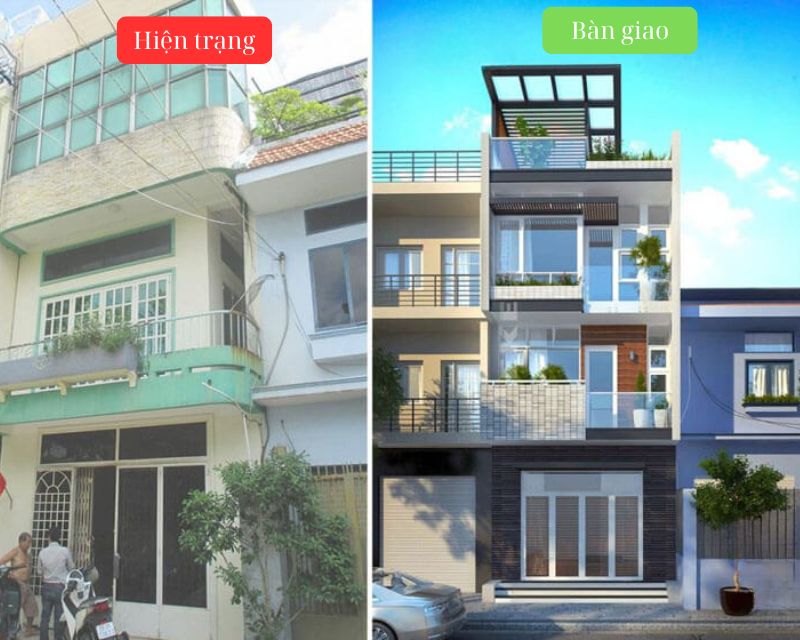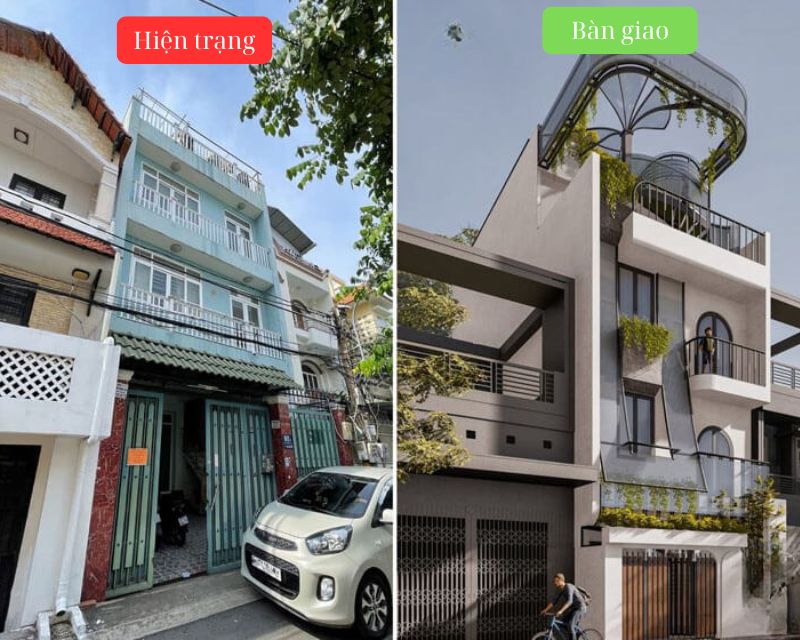 Thiết kế lại mặt tiền, nâng tầng, mở rộng ban công