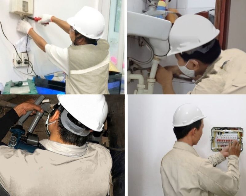 Thợ HNDC kiểm tra và thay mới hệ thống điện nước trong chung cư cũ tại Đà Nẵng