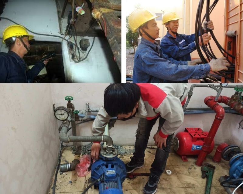 Hệ thống điện nước cũ kỹ ở nhà tầng nông thôn – chập chờn, rò rỉ, nguy cơ mất an toàn cần thay mới.